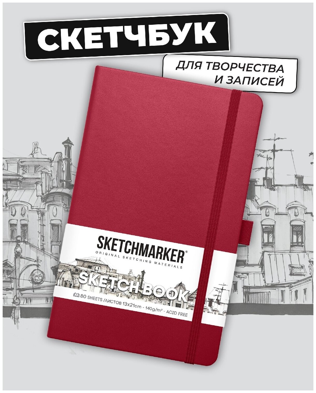 10 цен на Скетчбук Sketchmarker, 130 х 210 мм, 80 листов, твёрдая обложка из искусственной кожи, маджента, блок 140 г/м2