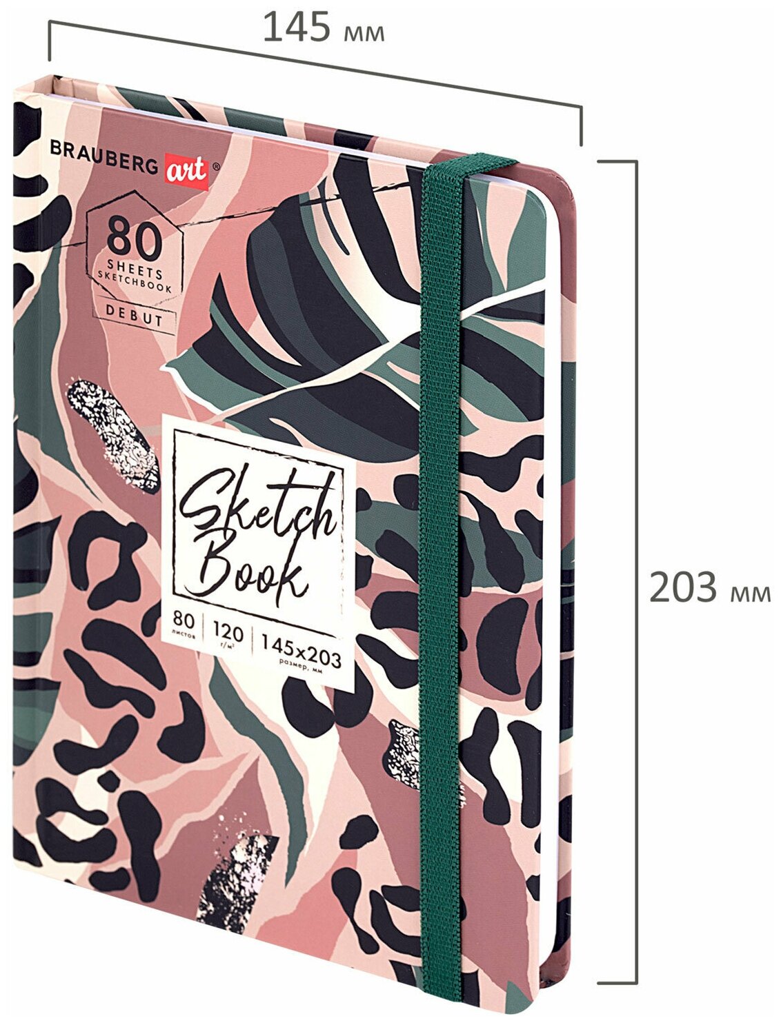 Скетчбук Brauberg белая бумага 120 г, 145х203 мм, 80 л, резинка, твердый, листья (114587) информация: