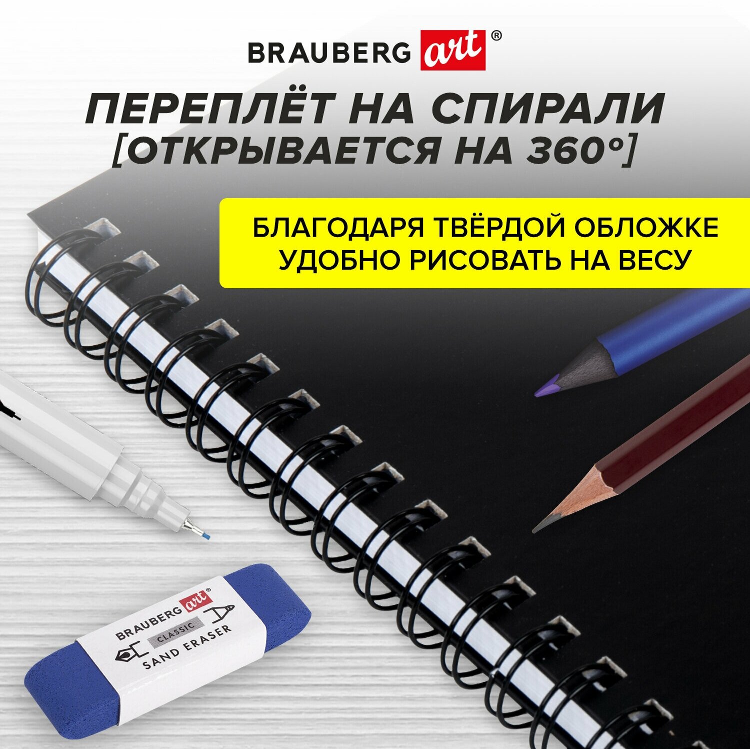 Блокнот-Скетчбук с белыми страницами для рисования эскизов 160 г/м2, 145х205 мм, 60 листов, гребень, твёрдая обложка Черная, Brauberg Art, 115072 452 ₽