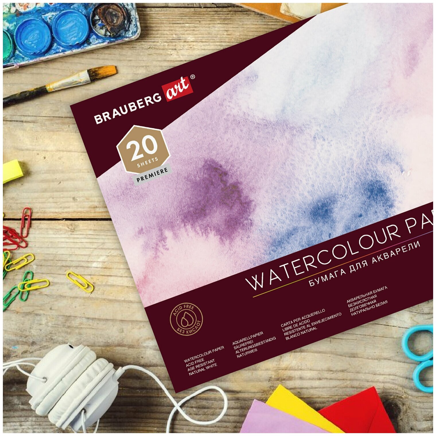 10 цен на Упаковка 2 шт. Альбом для акварели, бумага 300 г/м2, 270х390 мм, среднее зерно, 20 листов, склейка, BRAUBERG ART PREMIERE, 113223