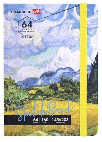 Комплект 12 шт, Скетчбук, белая бумага 160 г/м2, 145х203 мм, 64 л., резинка, твердый, BRAUBERG ART CLASSIC "Ван Гог", 114590 информация: