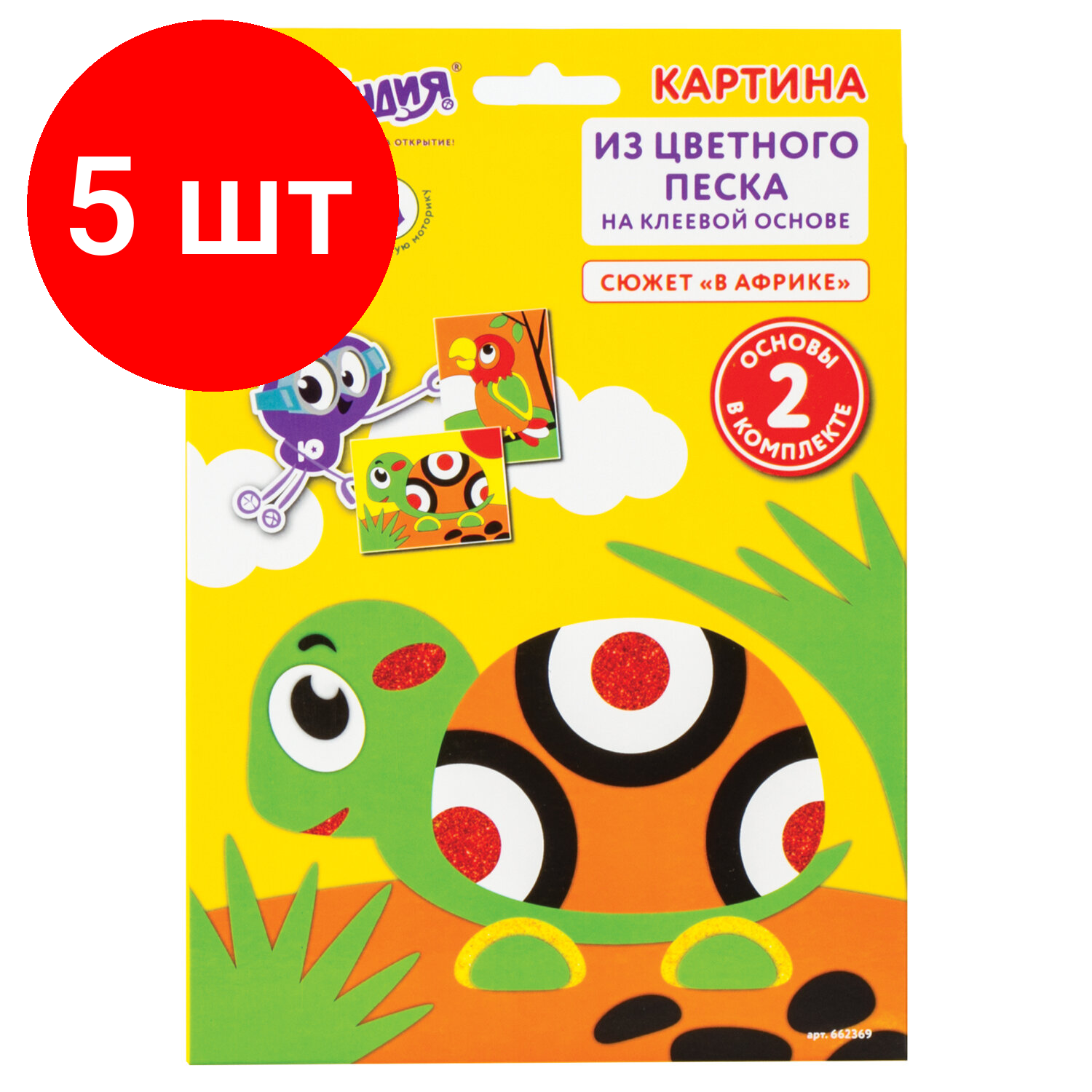 Комплект 5 шт, Набор для творчества "Картина из цветного песка", "В Африке", 2 самоклеящиеся основы 20х15 см, юнландия, 662369 информация: