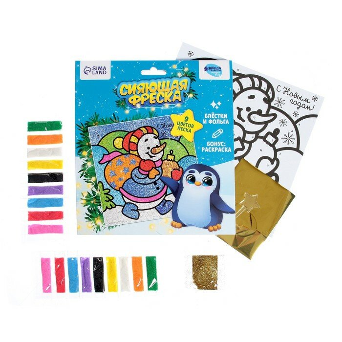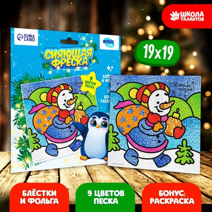 10 цен на Фреска блёстками и фольгой на новый год «Снеговик», новогодний набор для творчества