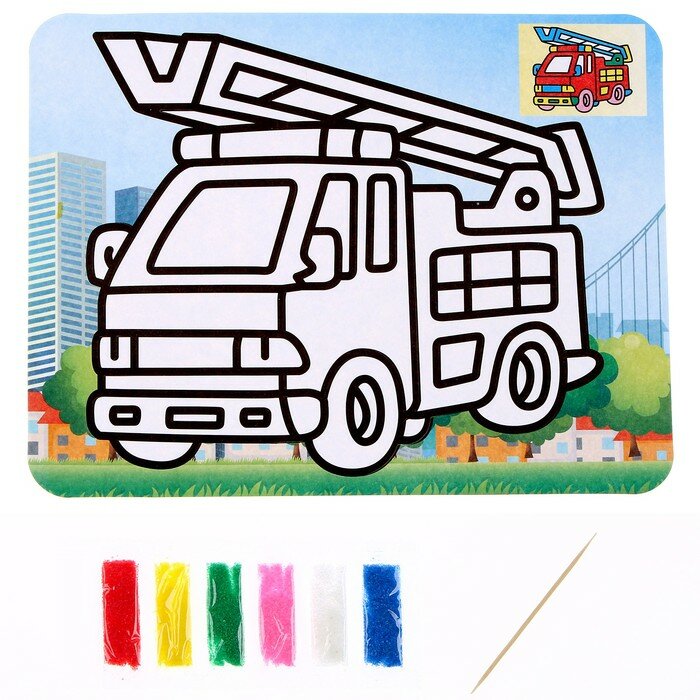 10 цен на Фреска с цветным основанием «Пожарная машина», 6 цветов песка