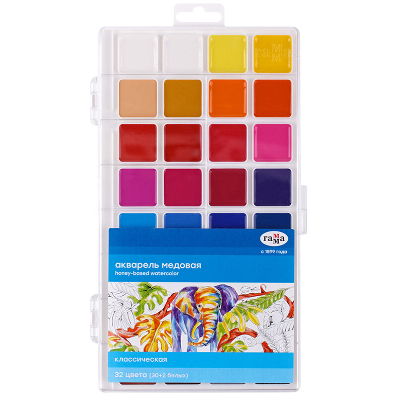 Акварель Гамма "Классическая", медовая, 32 цвета, без кисти, пластик. упак, европодвес