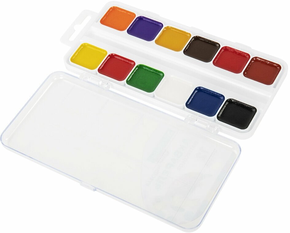 Краски акварельные BRAUBERG KIDS, медовые, 12 цветов, квадратные кюветы, пластиковый пенал, 192282 информация: