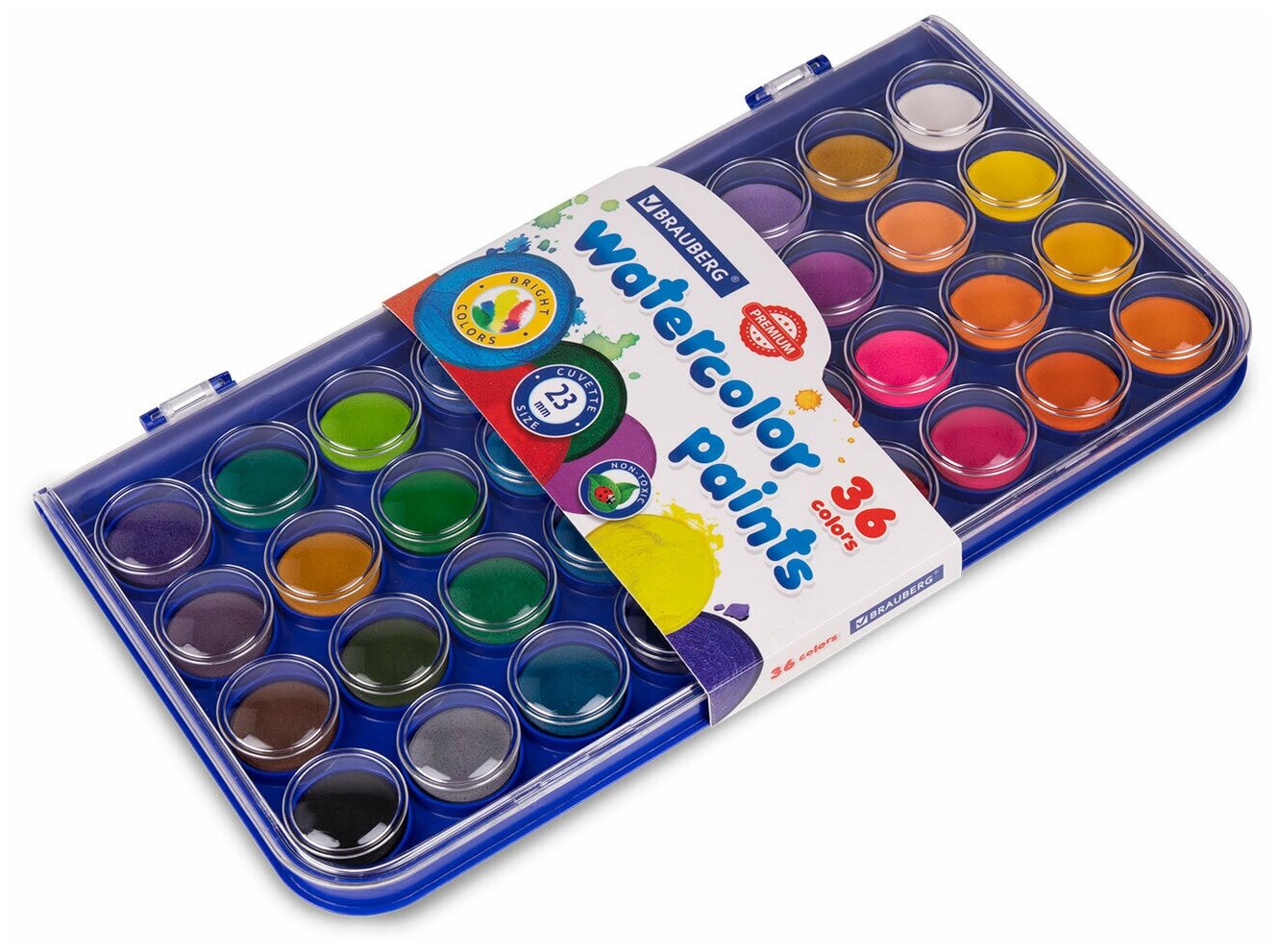 Краски акварельные BRAUBERG "PREMIUM" 36 цветов, круглые кюветы 23 мм, пенал, 191746 (арт. 191746) информация: