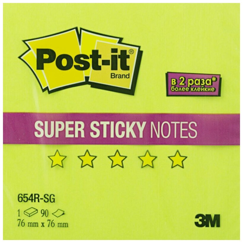 Блок самоклеящийся бумажный 3M Post-it Super Sticky 654R-SG 7100062391 76x76мм 90 листов неон зеленый