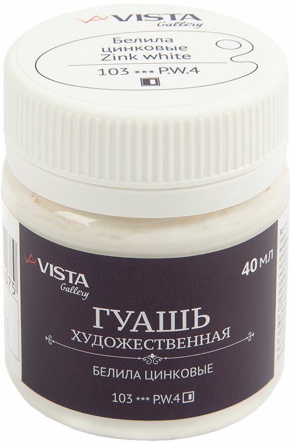 Краска гуашь "VISTA-ARTISTA" "Gallery" художественная группа 1 VAG-40 40 мл 103_Белила цинковые (Zink white) информация: