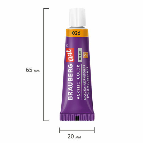 Краски акриловые художественные набор 24 цвета по 5 мл, в тубах, BRAUBERG ART DEBUT, 192386 620 ₽