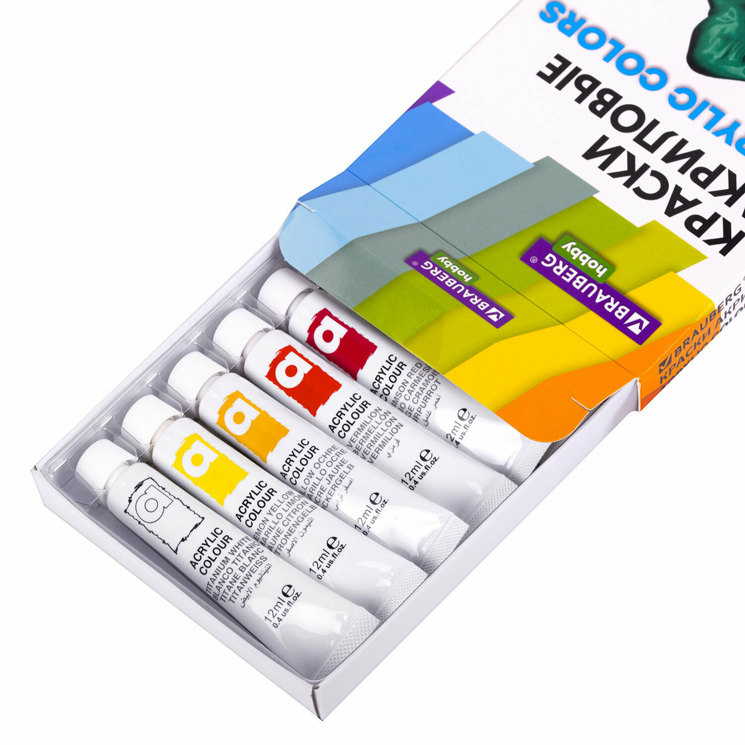 Комплект 5 шт, Краски акриловые художественные 12 цветов в тубах по 12 мл, BRAUBERG HOBBY, 192403 2 608 ₽