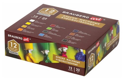 Краски масляные художественные BRAUBERG ART PREMIERE, 12 цв по 22 мл, проф. серия, в тубах, 191458 976 ₽