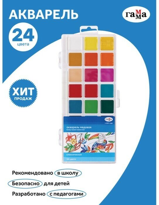 1 шт - Акварель Гамма "Классическая", медовая, 24 цвета, без кисти, пластик. упак., европодвес NEW информация: