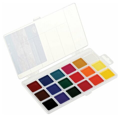 Отзывы на Комплект 15 шт, Краски акварельные гамма "Классическая", 18 цветов, медовая, без кисти, пластиковый корпус, европодвес, 1009196