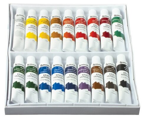 Отзывы на Комплект 3 шт, Краски акриловые художественные BRAUBERG ART DEBUT, набор 18 цветов по 12 мл, в тубах, 191126