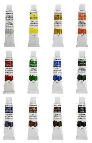 Краски акриловые художественные Brauberg ART для рисования, набор 12 штук, 12 цветов, тубы 12мл