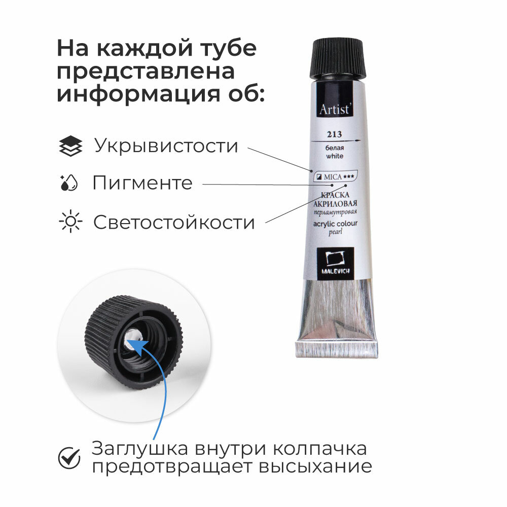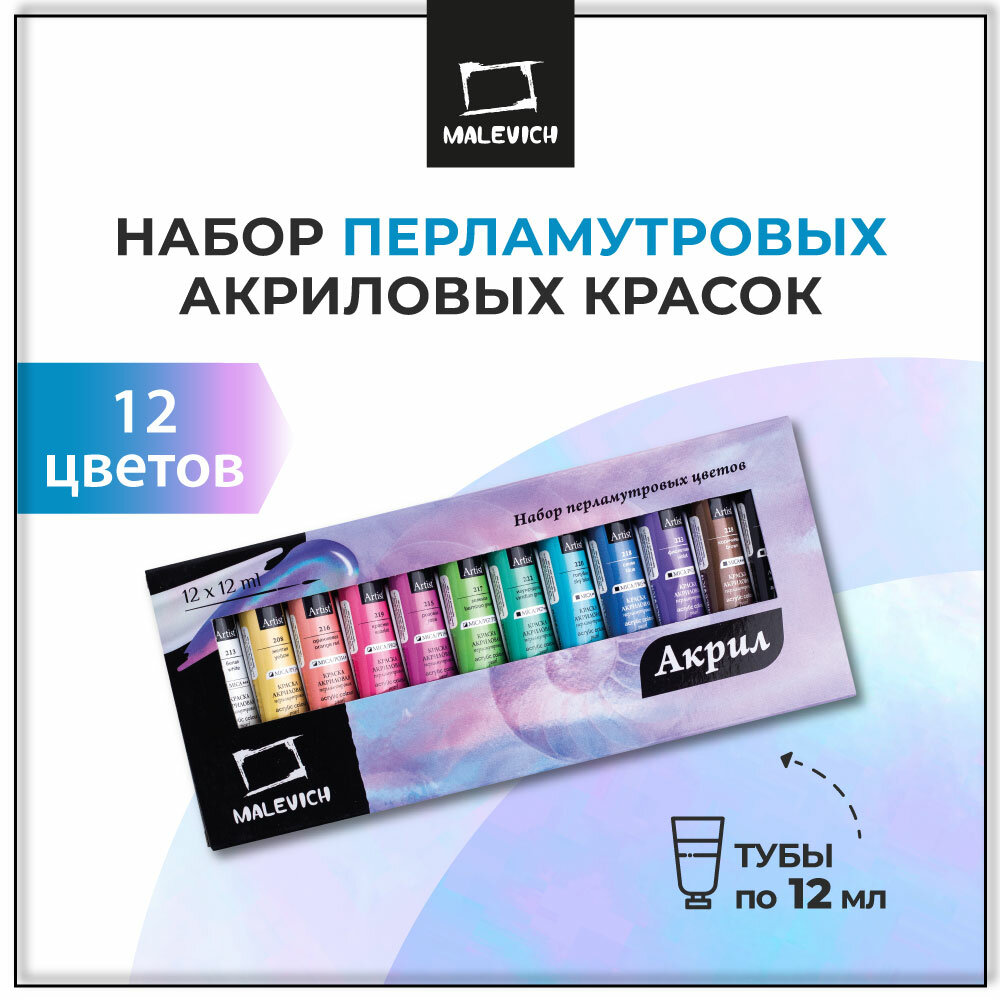 Набор перламутровых акриловых красок Малевичъ, 12 цветов по 12 мл информация: