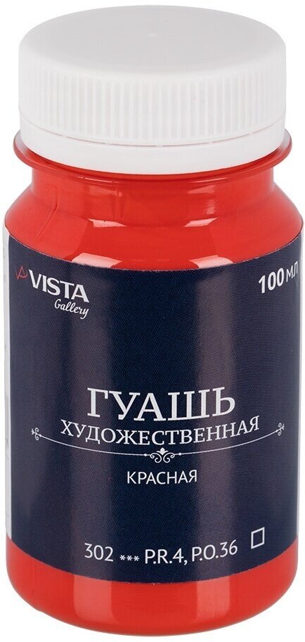 Краска гуашь "VISTA-ARTISTA" "Gallery" художественная группа 1 VAG-100 100 мл 302_Красная (Red) информация: