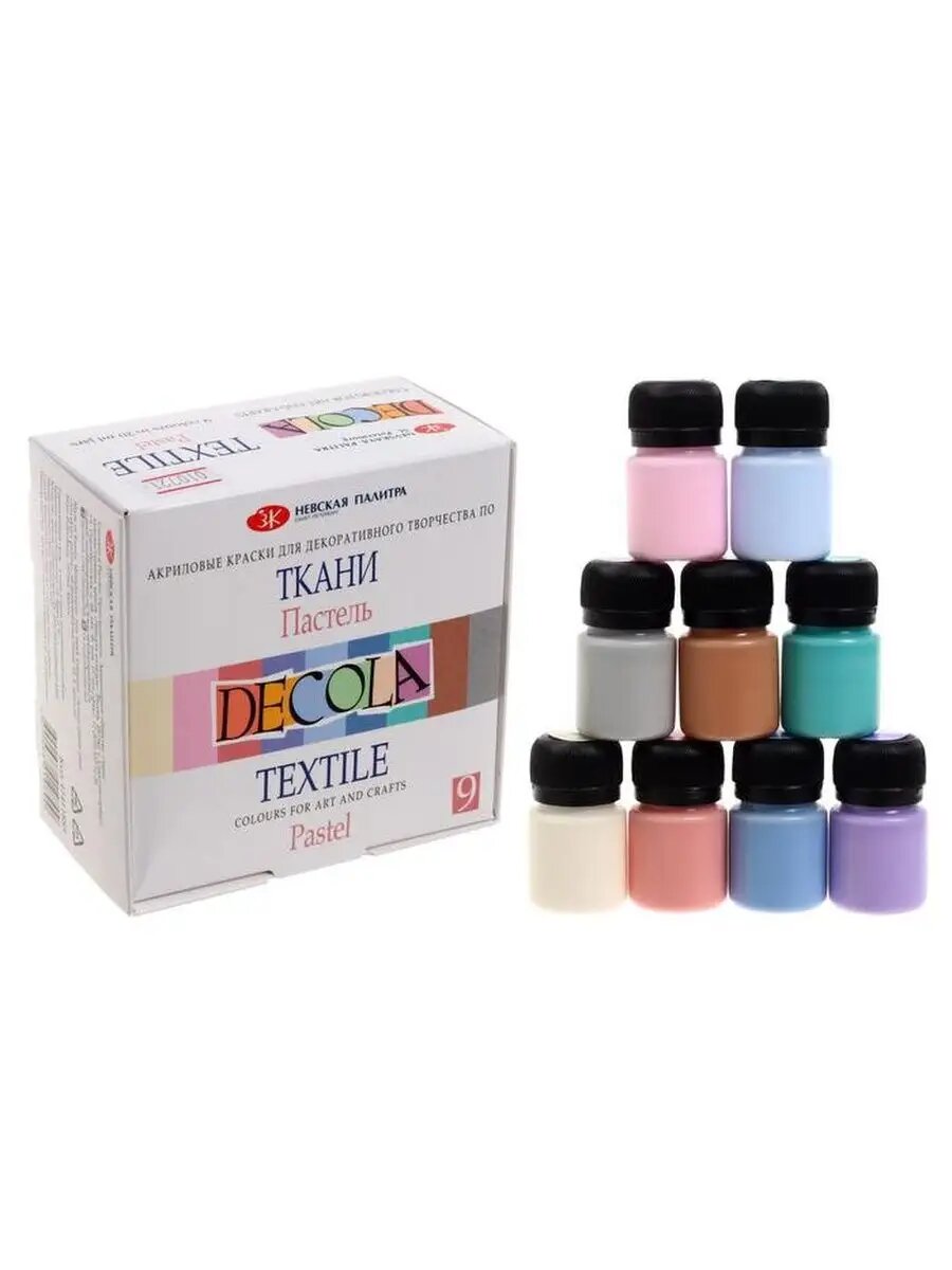 10 цен на Краска по ткани акриловая набор Pastel 9 штук х 20мл, ЗХК Decola "Пастель" 7393004 .