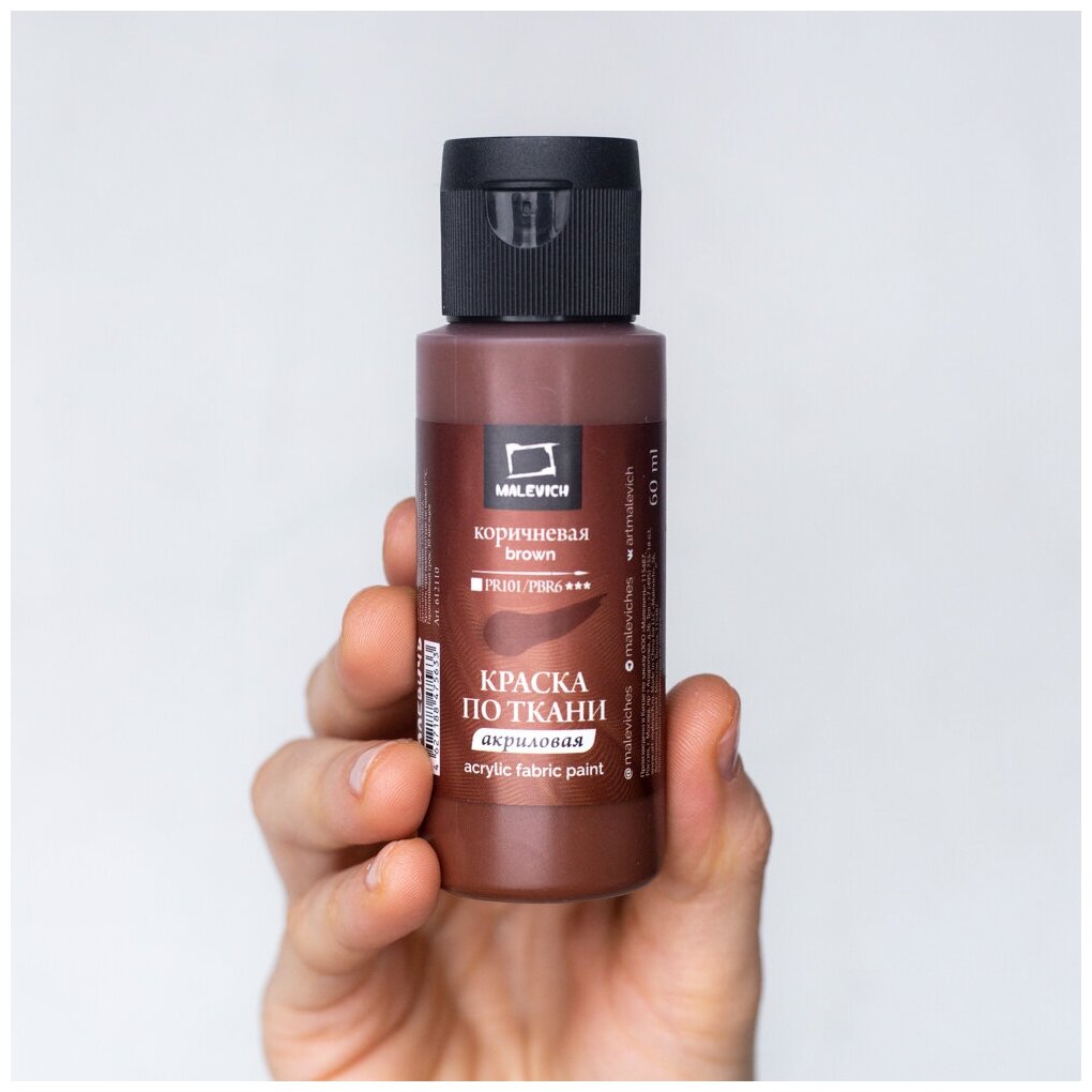 Краска акриловая по ткани Малевичъ, коричневая, 60 мл информация: