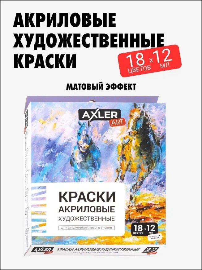 10 цен на Краски акриловые AXLER Art Debut набор 18 тюбиков по 12 мл, для рисования и творчества, матовые, для художников любого уровня