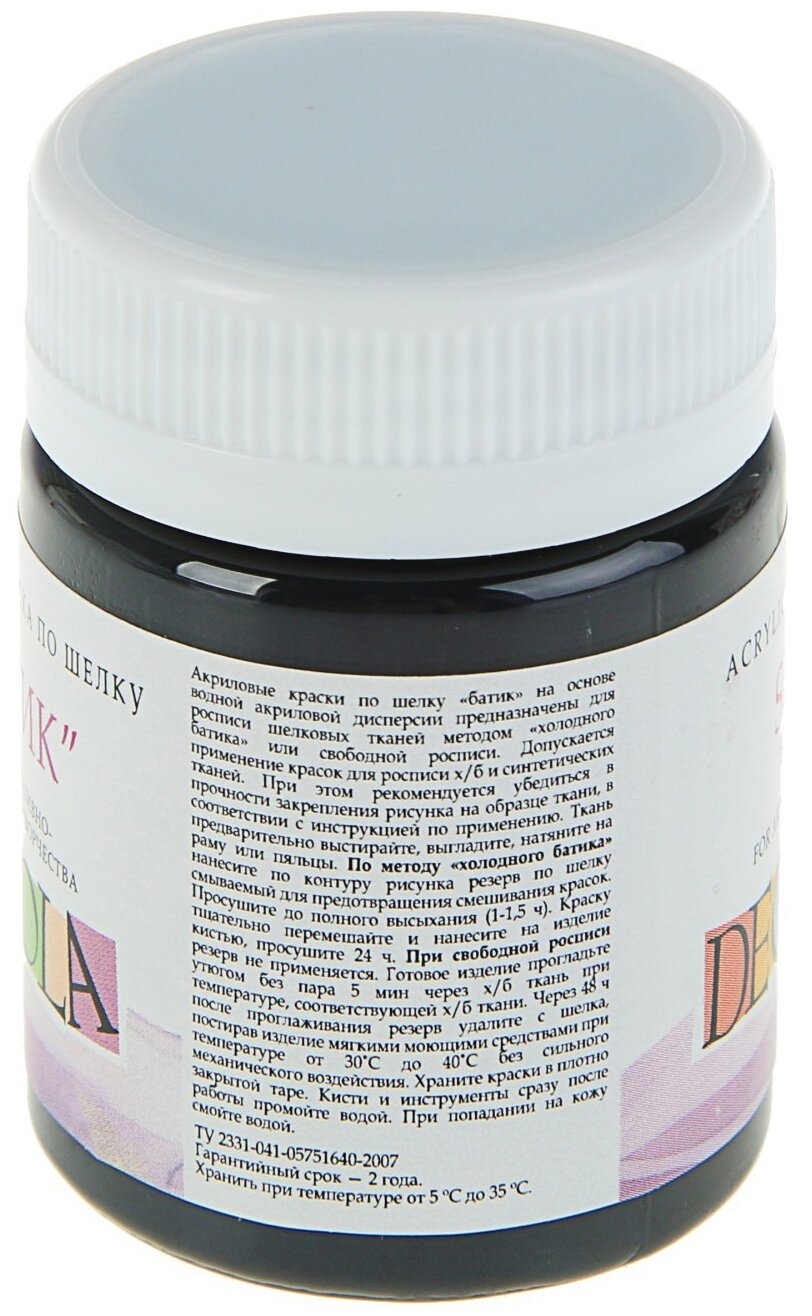 Краска по шелку "Батик", банка 50 мл, ЗХК Decola, Черная 4428810 (акриловая на водной основе) информация: