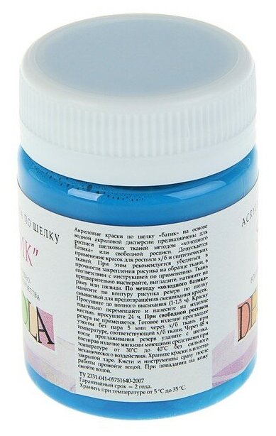 Отзывы на Краска по шелку "Батик", банка 50 мл, ЗХК Decola, Небесно-голубая 4428512 (акриловая на водной основе)