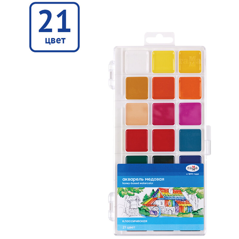 Акварель Гамма "Классическая", медовая, 21 цвет, без кисти, пластик. упак., европодвес NEW, 302620
