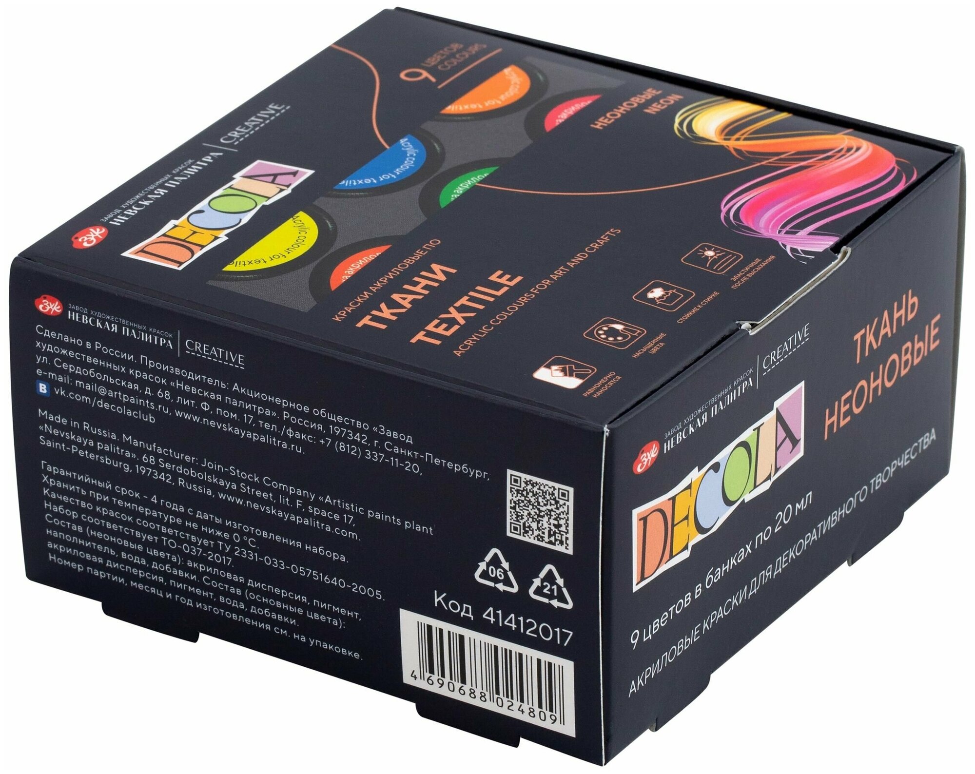 Завод художественных красок «Невская палитра» Краска по ткани, набор 9 цветов х 20 мл, ЗХК Decola, Neon, неоновые цвета, акриловая на водной основе, (41412017) информация: