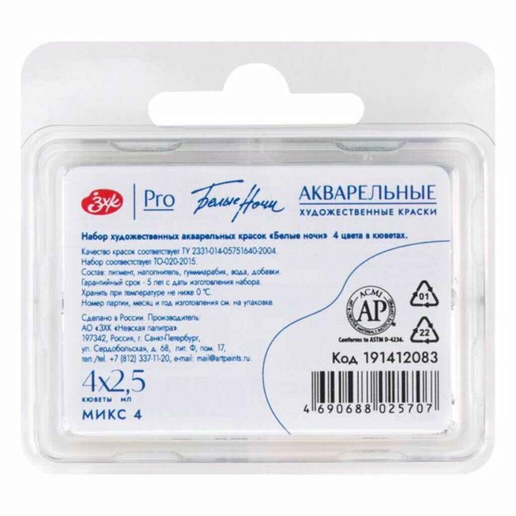 Акварельные краски худож. 4цв.*2,5мл Белые Ночи, кюветы, пластик №4 информация: