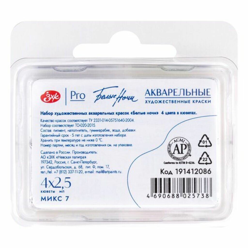 Акварельные краски худож. 4цв.*2,5мл Белые Ночи, кюветы, пластик №7 информация: