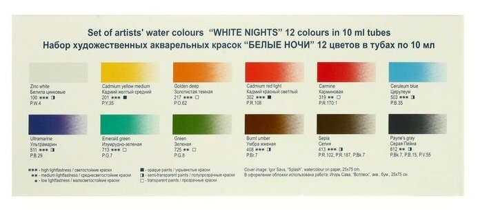 Акварель Белые ночи, художественная, 12цв.*10мл, пластик/картон IWS информация: