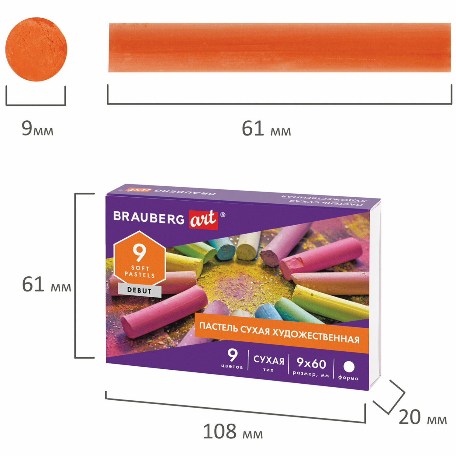 Пастель сухая художественная BRAUBERG ART DEBUT, 9 цветов, круглое сечение, 181459 250 ₽