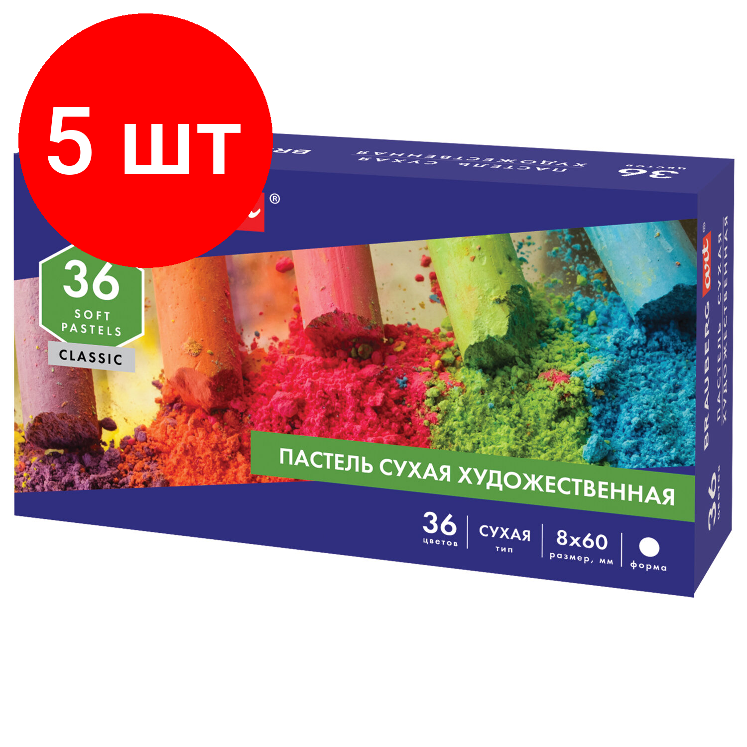 Комплект 5 шт, Пастель сухая художественная BRAUBERG ART CLASSIC, 36 цветов, круглое сечение, 181455 информация: