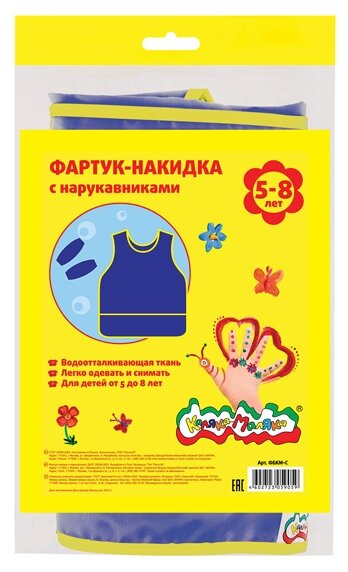 Фартук д/труда Каляка-Маляка ткань желт. с нарук. закрыт.европодвес 5-8 лет Каляка-Маляка 110505