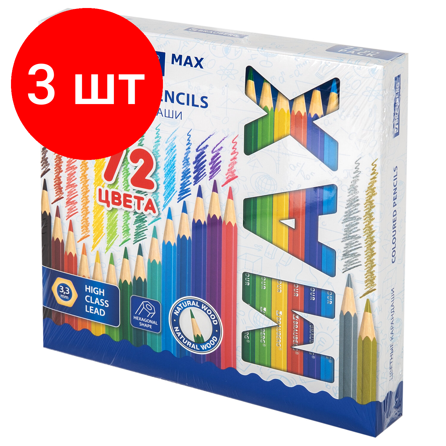 Комплект 3 шт, Карандаши цветные супермягкие яркие классические BRAUBERG MAX, 72 цвета, грифель 3.3 мм, 181861 информация: