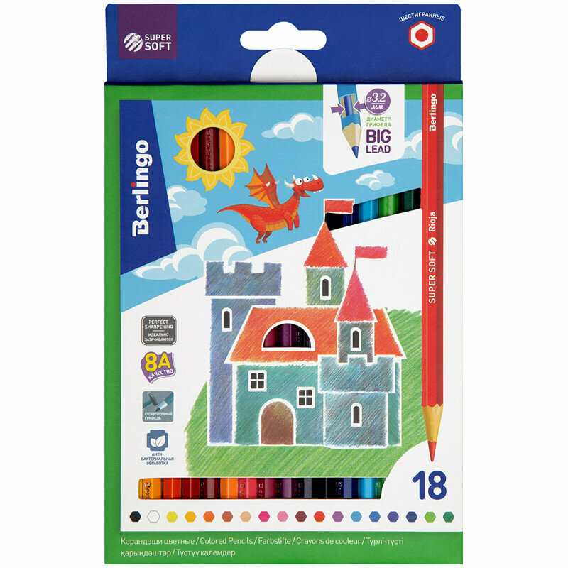 Отзывы на Карандаши цветные Berlingo "SuperSoft. Замки", 18цв., заточен., картон, европодвес, 297231