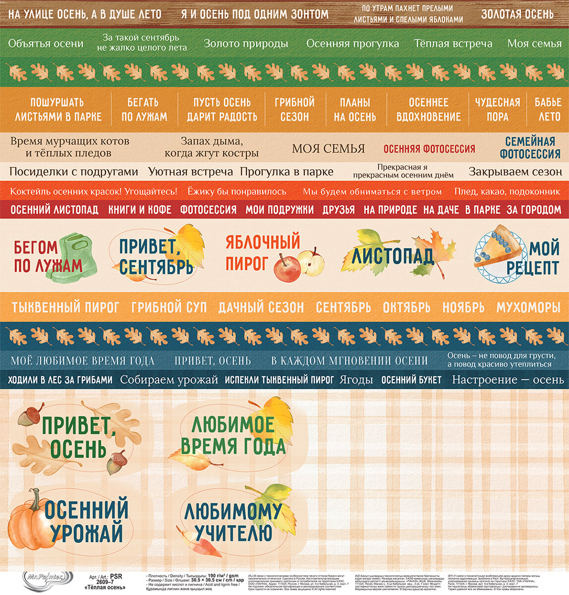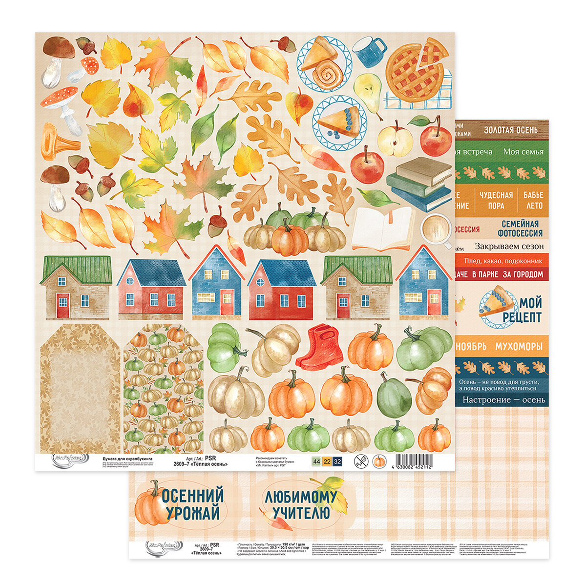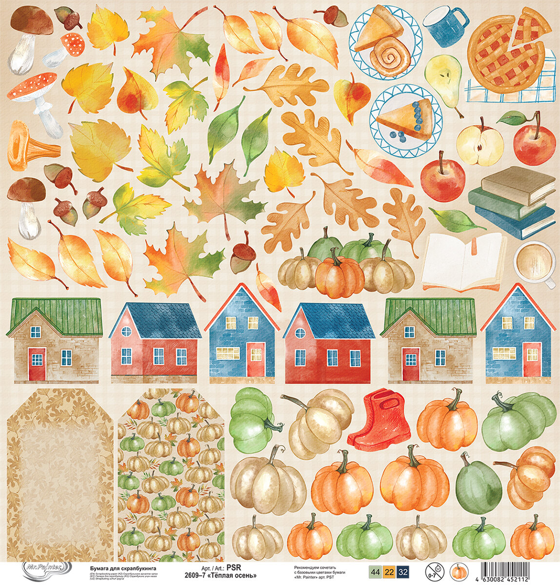 Бумага для скрапбукинга "Mr.Painter" PSR 2609 "Теплая осень" 190 г/кв.м 30.5 x 30.5 см 7 лист для вырезания информация: