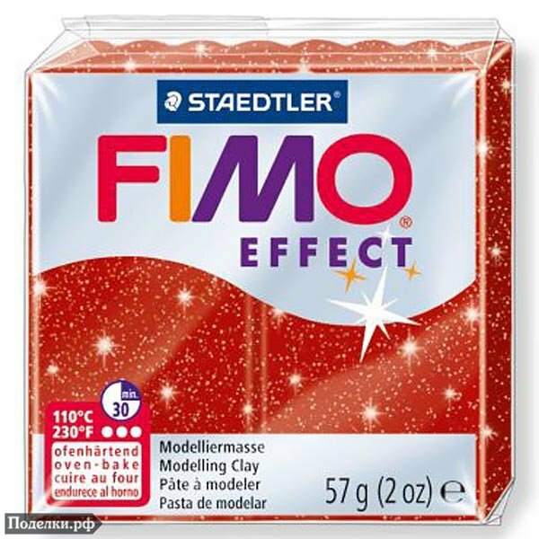Отзывы на Полимерная глина Fimo Effect 8020-202 красный с блестками (glitter red) 56 г., цена за 1 шт.
