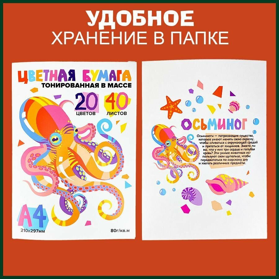 10 цен на Набор двусторонней тонированной цветной бумаги для школы и творчества, 20 цветов, 40 листов, формат А4