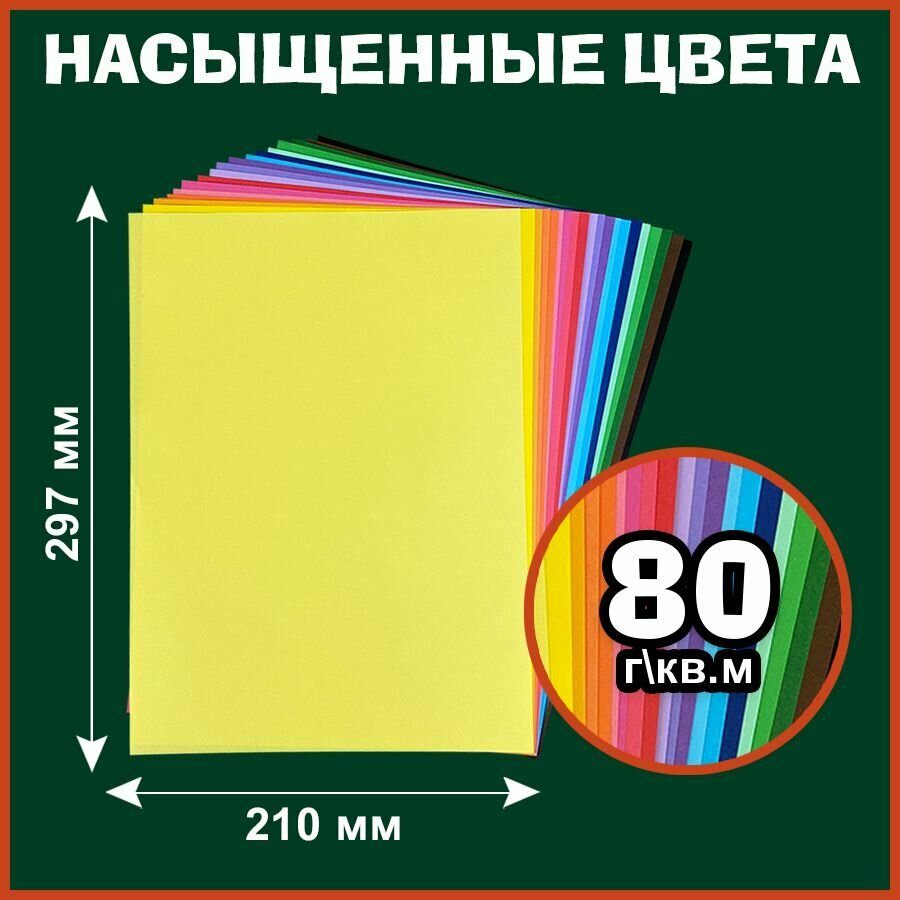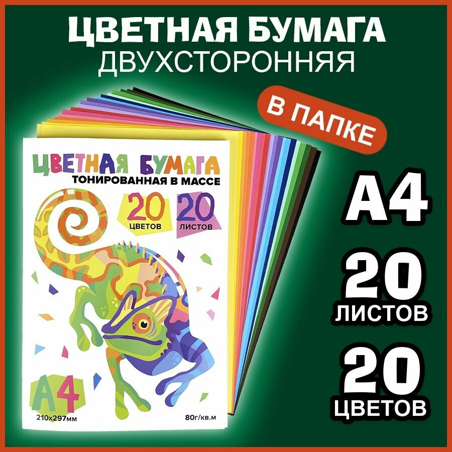 10 цен на Набор двусторонней цветной бумаги 21x29,7 см, 20 листов, 20 ярких цветов