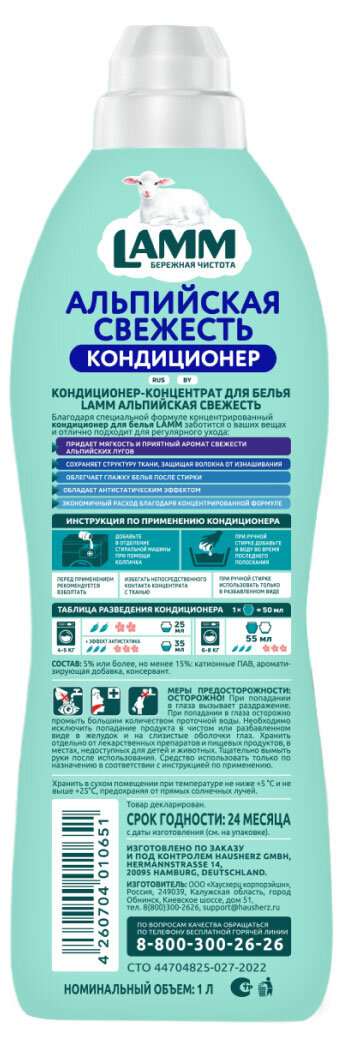 Кондиционер для белья, LAMM, альпийская свежесть, 1000 мл информация: