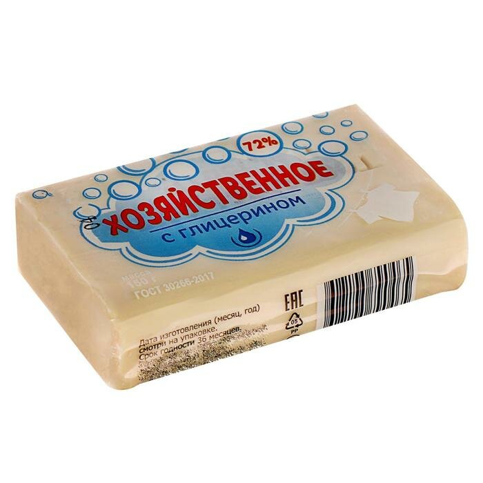 Мыло хозяйственное ГОСТ-30266-2017 72%, глицериновое, в упаковке, 150 г информация:
