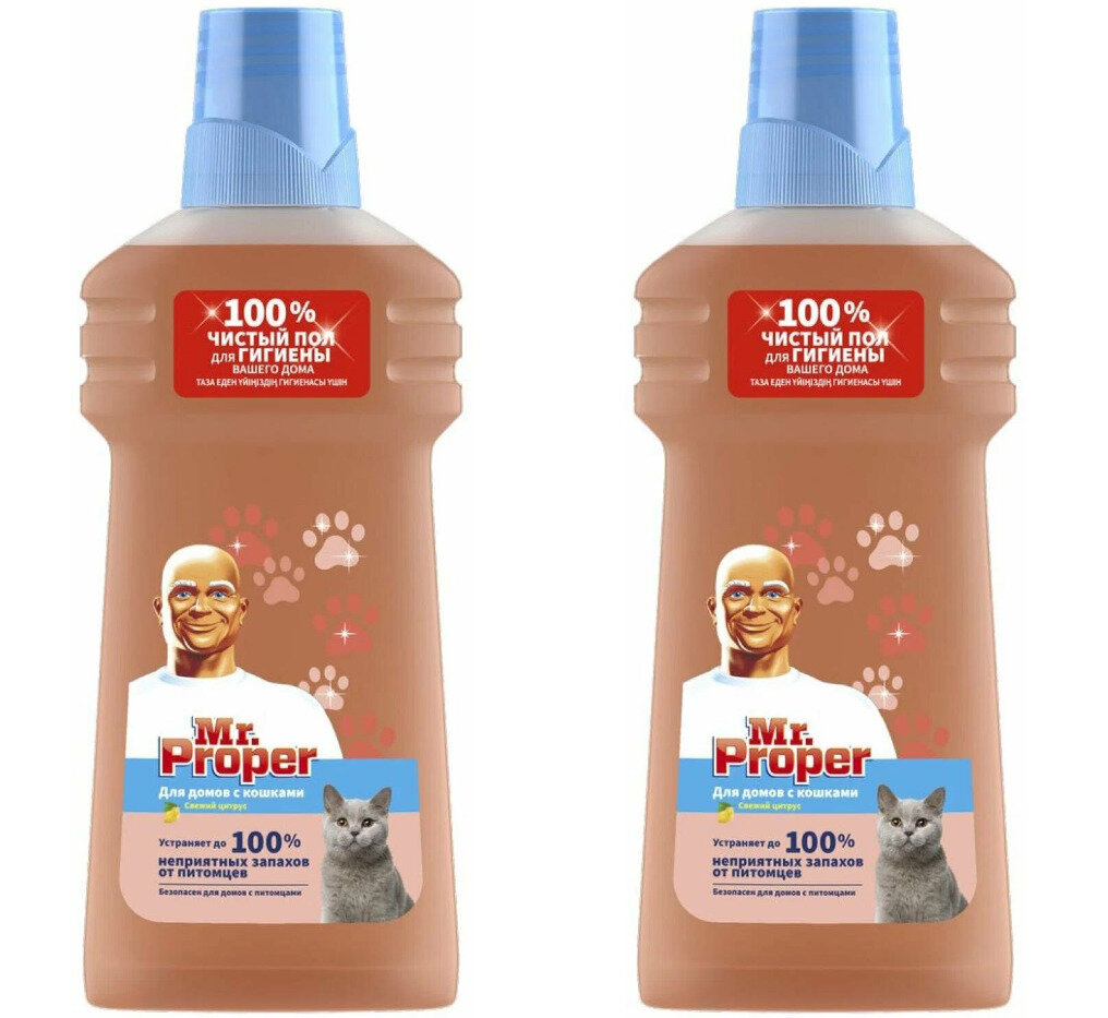 Отзывы на Жидкость для пола Mr. Proper, для дома с кошками, свежий цитрус, 500 мл, 2 уп