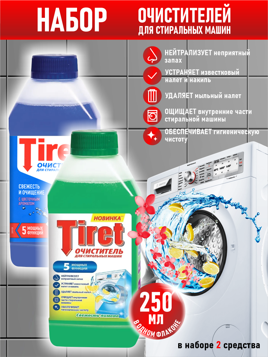 10 цен на Набор TIRET Очиститель для стиральных машин 250 мл. + Очиститель Свежесть лимона 250 мл.