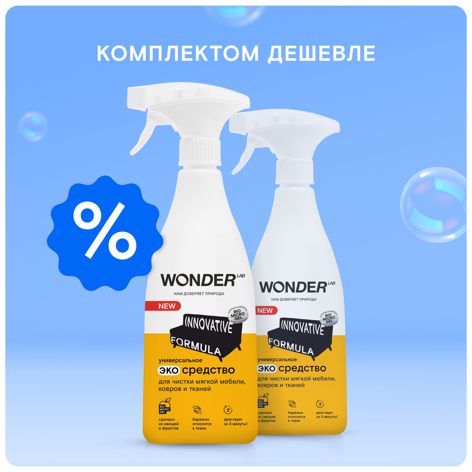 WONDER LAB ЭкоСредство для мягкой мебели, ковров и тканей, 550 мл, 2 ШТ 1 060 ₽