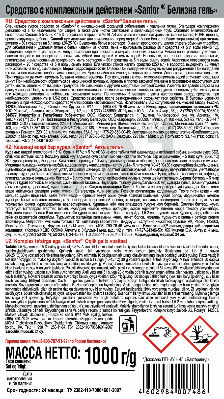 Sanfor Белизна гель 3 в 1, 1 л информация: