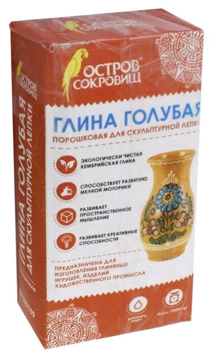 Остров сокровищ Глина для лепки, голубая, 1 кг, порошковая sela информация: