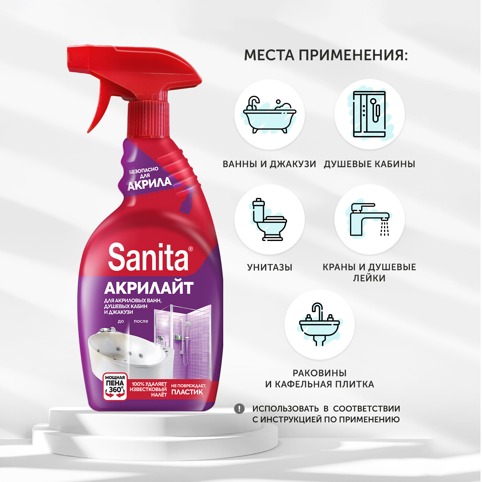 Чистящее средство для удаления известкового налета, Sanita, Акрилайт, спрей, 500 мл 441 ₽