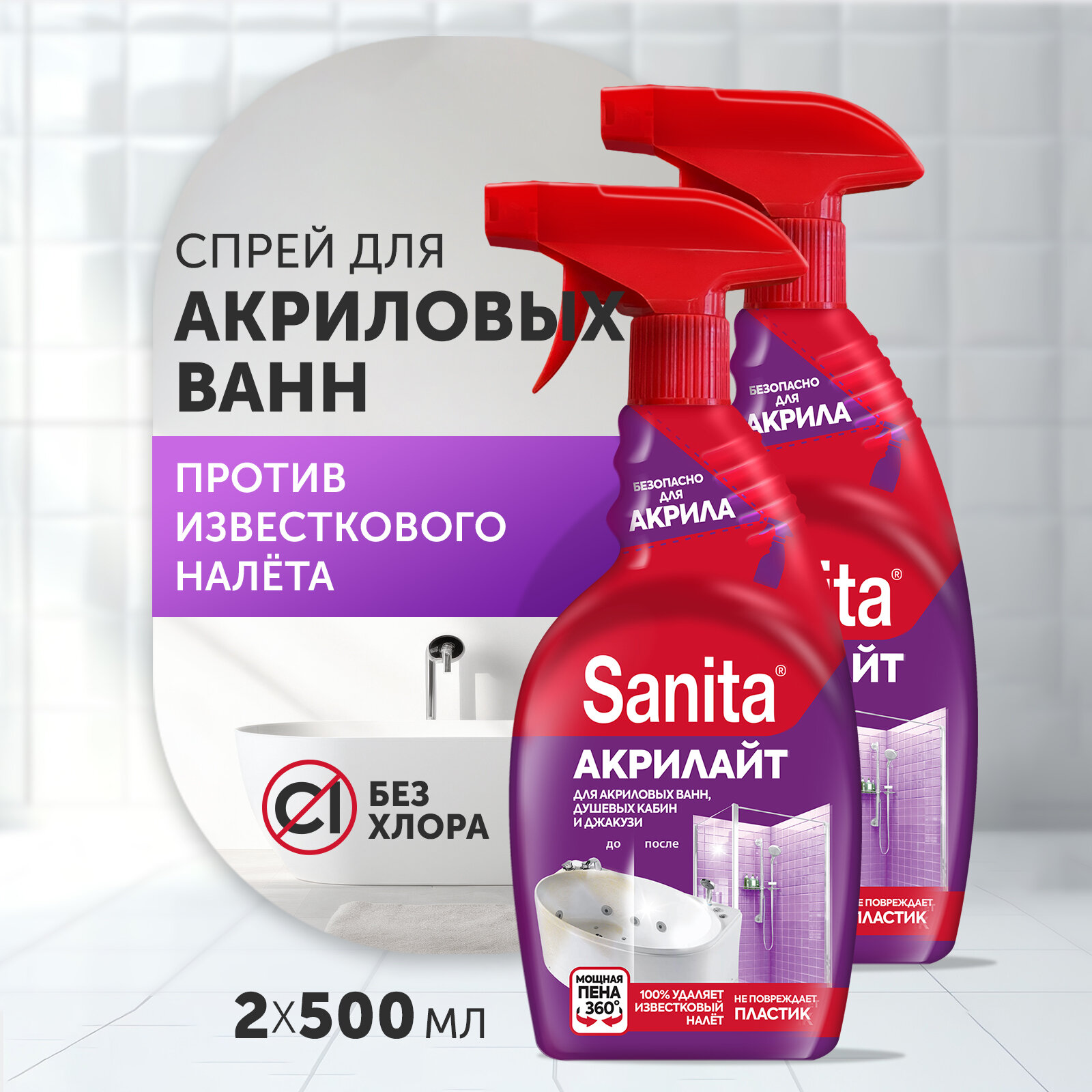 10 цен на Набор чистящих средств "SANITA" спрей Акрилайт очиститель от ржавчины и известкового налета, 500 мл (2 шт)